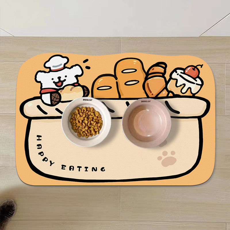 Water Absorbent & Quick Dry: Our dog feeding mat has a soft, felt-like surface but is durable and long lasting. Diatomaceous earth material dog place mat absorbent water quickly.