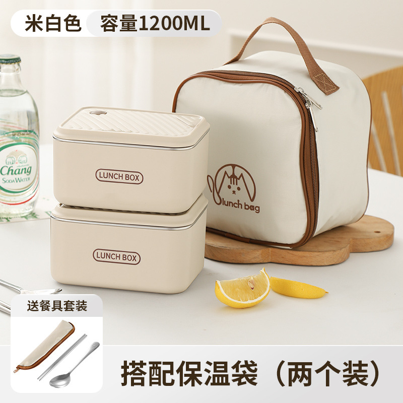 - White Lunch Box Set(600ml*2+tableware+insulation bag)