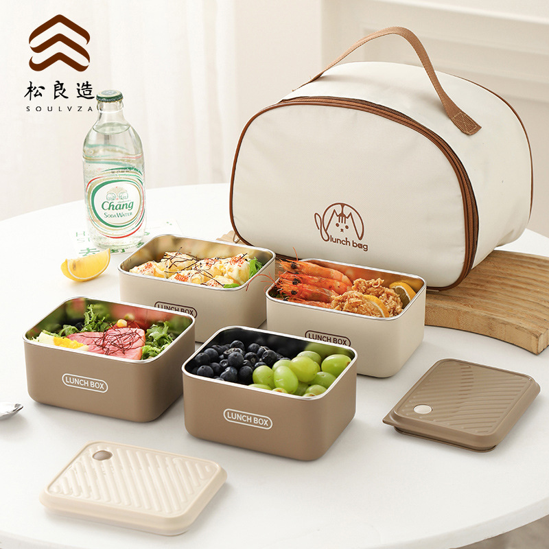 - Khaki Lunch Box Set(600ml*2+tableware+insulation bag)